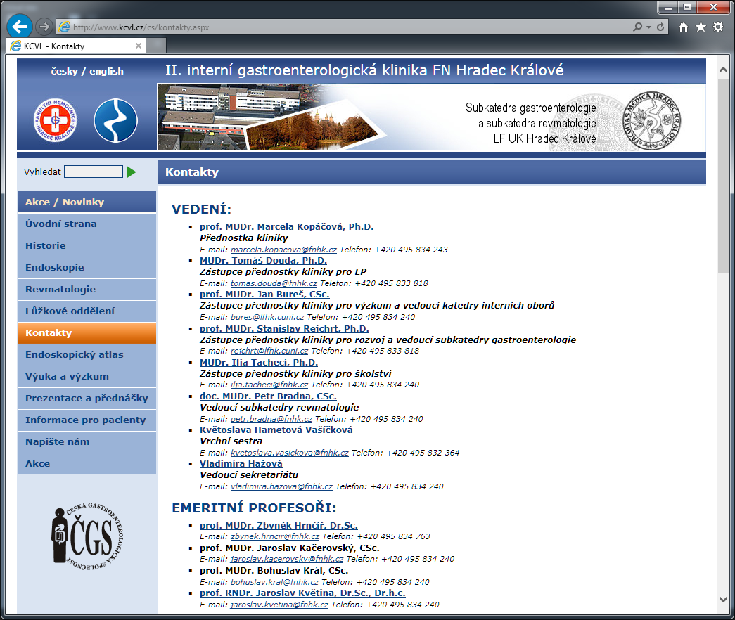 Web pages produced for one of the Hradec Králové University Hospital's departments. Offers comprehensive atlas of unique gastro-enterology findings.